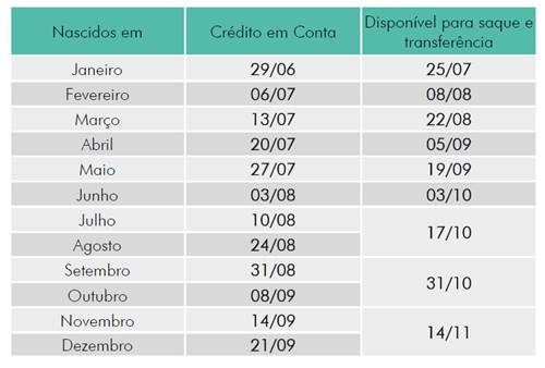 O calendário foi estabelecido com base no mês de nascimento do trabalhador, e teve início em 29 de junho, com os nascidos em janeiro. A partir da data de crédito dos valores na conta Poupança Social Digital, os recursos podem ser utilizados em transações eletrônicas, e posteriormente, na data para saque e transferência, os valores remanescentes ficam disponíveis para saque em espécie ou transferência, sem custo, para outras contas.