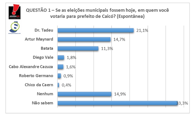 PESQUISA AGORASEI/BLOG JAIR SAMPAIO – CAICÓ (ESPONTÂNEA): Dr. Tadeu lidera intenção de voto para prefeito com 21,1%