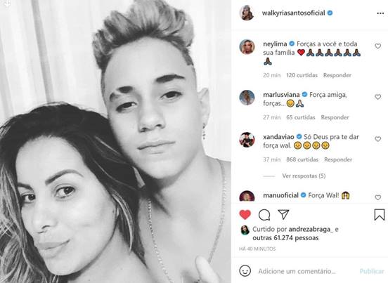Assessoria de Walkyria Santos publicou um comunicado nas redes sociais da artista. Em um vídeo postado em seu canal no instagram, a cantora culpou comentários ofensivos que o filho recebeu no tik tok de um vídeo que postou lá. “Ele achou que as pessoas iam gostar, mas os comentários foram bem agressivos nesse tik tok nojento”, disse ela.