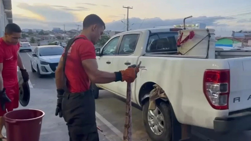 De acordo com a corporação, o motorista percebeu a presença da cobra e decidiu ir até o quartel dos Bombeiros no município para pedir ajuda. No local, os militares fizeram a avaliação da ocorrência e realizaram o procedimento de captura com segurança.