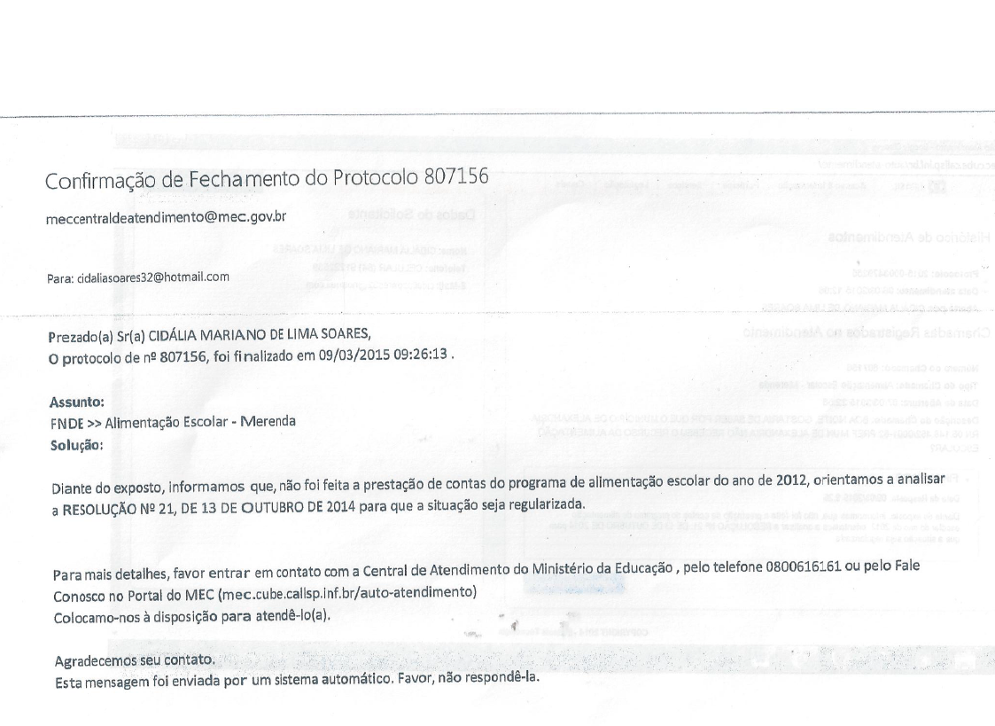 Como resposta e, para se obter a liberação dos recursos, o FNDE  orientou que o Município deveria entrar com ações ordinárias no Ministério Público Federal, em desfavor do antigo gestor municipal Alberto Patrício, o que ocorreu como comprova a certidão abaixo.  A consequência dessas ações foi a liberação, em abril daquele ano, dos recursos que se encontravam bloqueados.