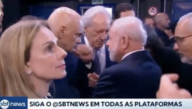 Durante o evento do SBT, o fotógrafo de Lula, Ricardo Stuckert, pediu que as câmeras parassem de filmar o presidente enquanto ele conversava com o ministro do STF Alexandre de Moraes.