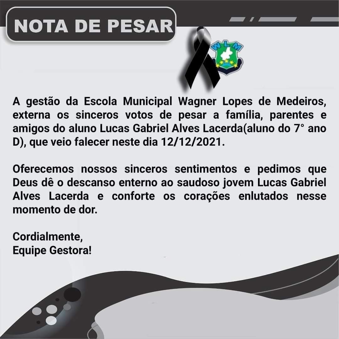 Lucas Gabriel, com nome social de Sophia Beatriz, morava no bairro Novo Horizonte, em Jucurutu, Ele chegou ser socorrido para o hospital local.