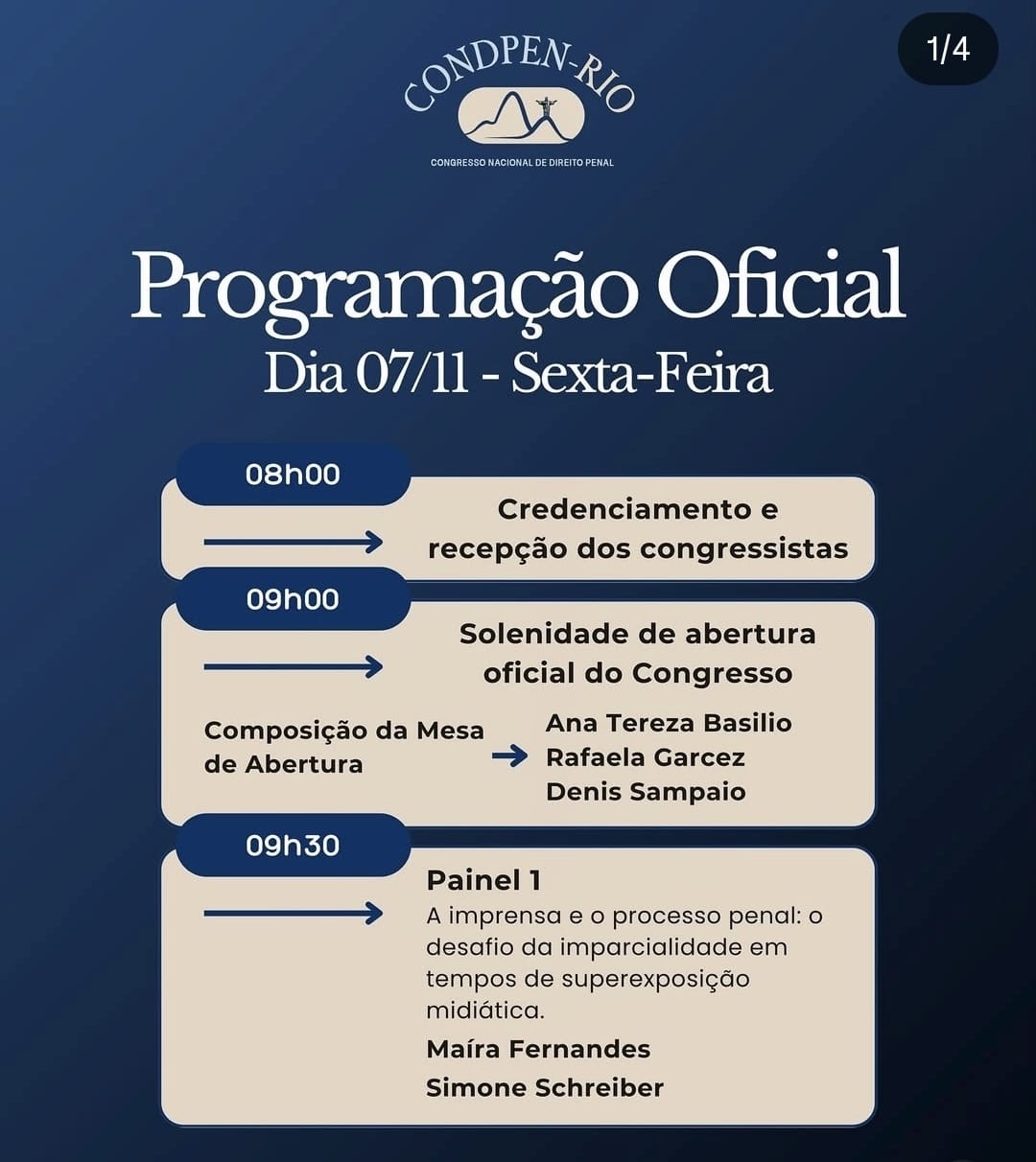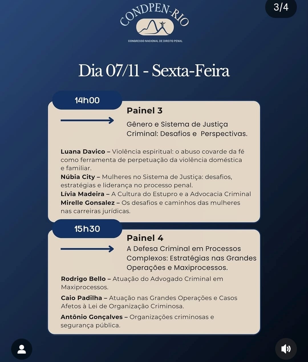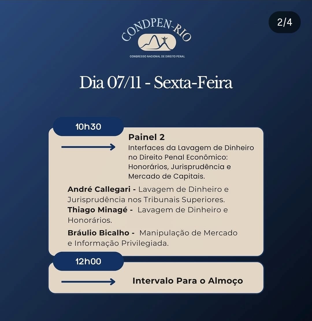 A programação do congresso inclui painéis com temas de grande relevância jurídica, como acordo de não persecução penal, investigação defensiva, lavagem de dinheiro, crimes econômicos e os desafios da imprensa na cobertura de processos penais. Entre os palestrantes estão juristas e advogados reconhecidos nacionalmente, a exemplo de André Callegari, Maíra Fernandes, Simone Schreiber e Thiago Minagé.
