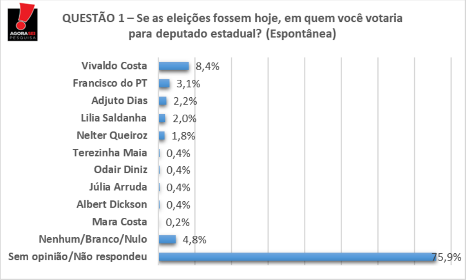 A pesquisa AgoraSei/Blog Gustavo Negreiros, divulgada nesta terça-feira (2), com eleitores de Caicó, apontou que o deputado estadual Vivaldo Costa lidera a disputa por uma vaga pela Assembleia Legislativa.