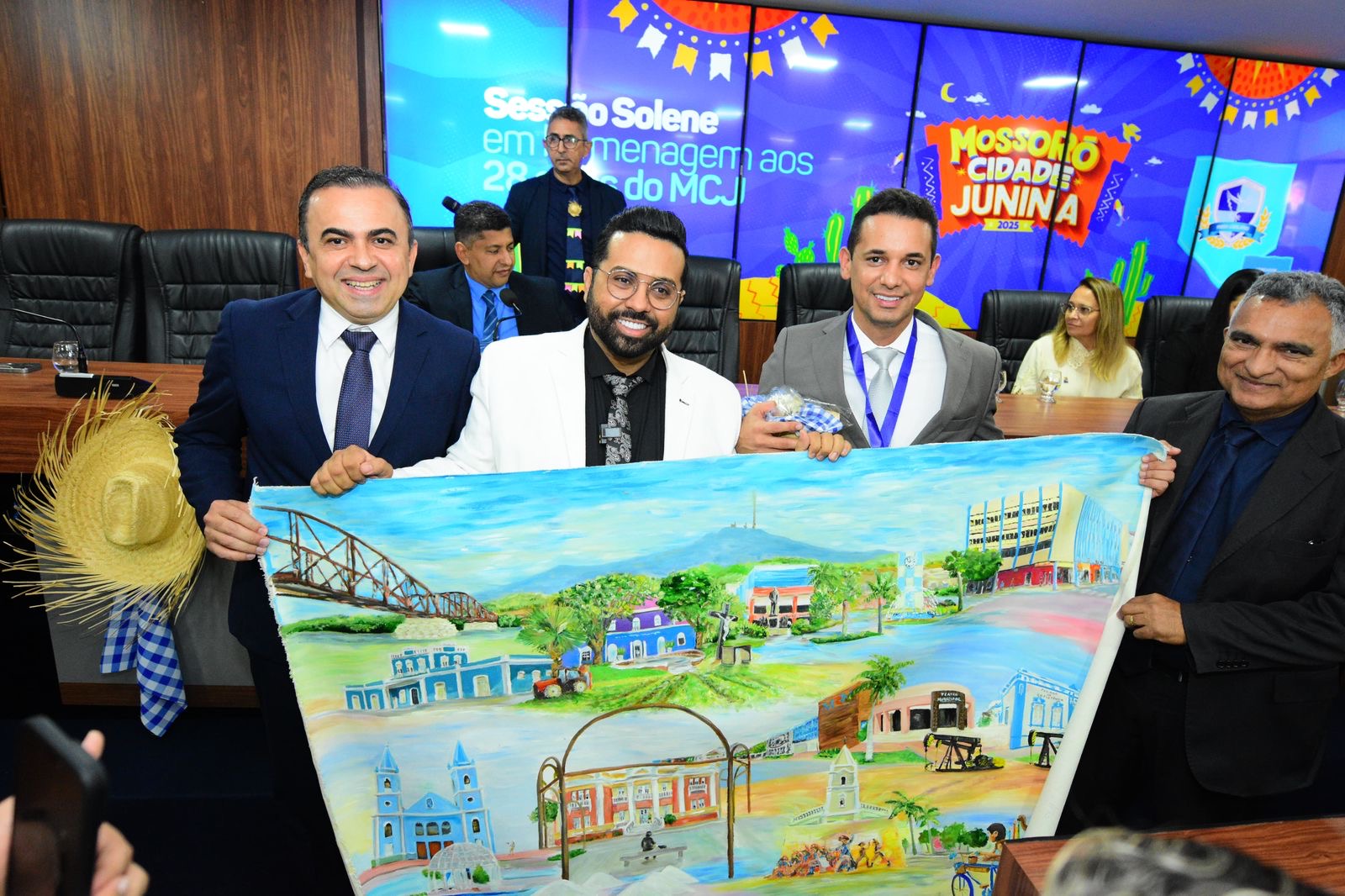 O prefeito de Mossoró, Allyson Bezerra, foi homenageado nesta quinta-feira (05), pelo trabalho de valorização realizado pela cultura mossoroense, com destaque para a organização de eventos como o Mossoró Cidade Junina, Mossoró Sal e Luz e Estação Natal. A homenagem aconteceu durante a sessão solene em alusão aos 28 anos do MCJ na Câmara Municipal de Mossoró.