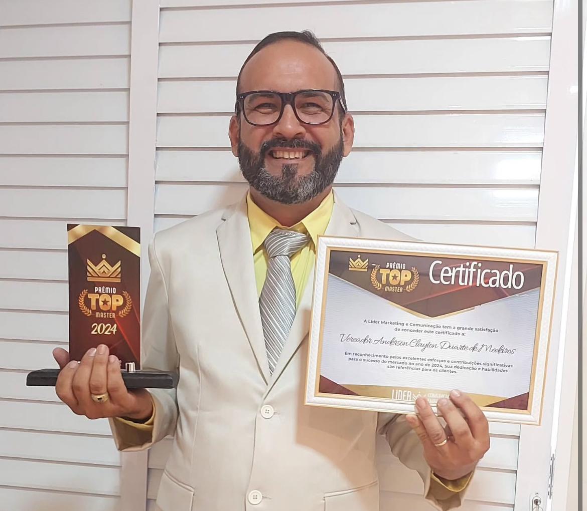 O vereador Andinho Duarte recebeu o reconhecimento popular da Top Master como “Vereador Atuante do Ano de 2024”, em Caicó. A premiação destaca o trabalho de personalidades que têm se dedicado à melhoria da qualidade de vida da população.