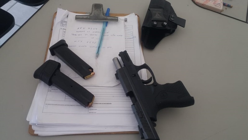 Um popular de 30 anos, residente no centro da cidade, natural daquele município, tinha o documento de aquisição do armamento, porém NÃO tinha a autorização para portar a arma na cintura, como manda a lei.