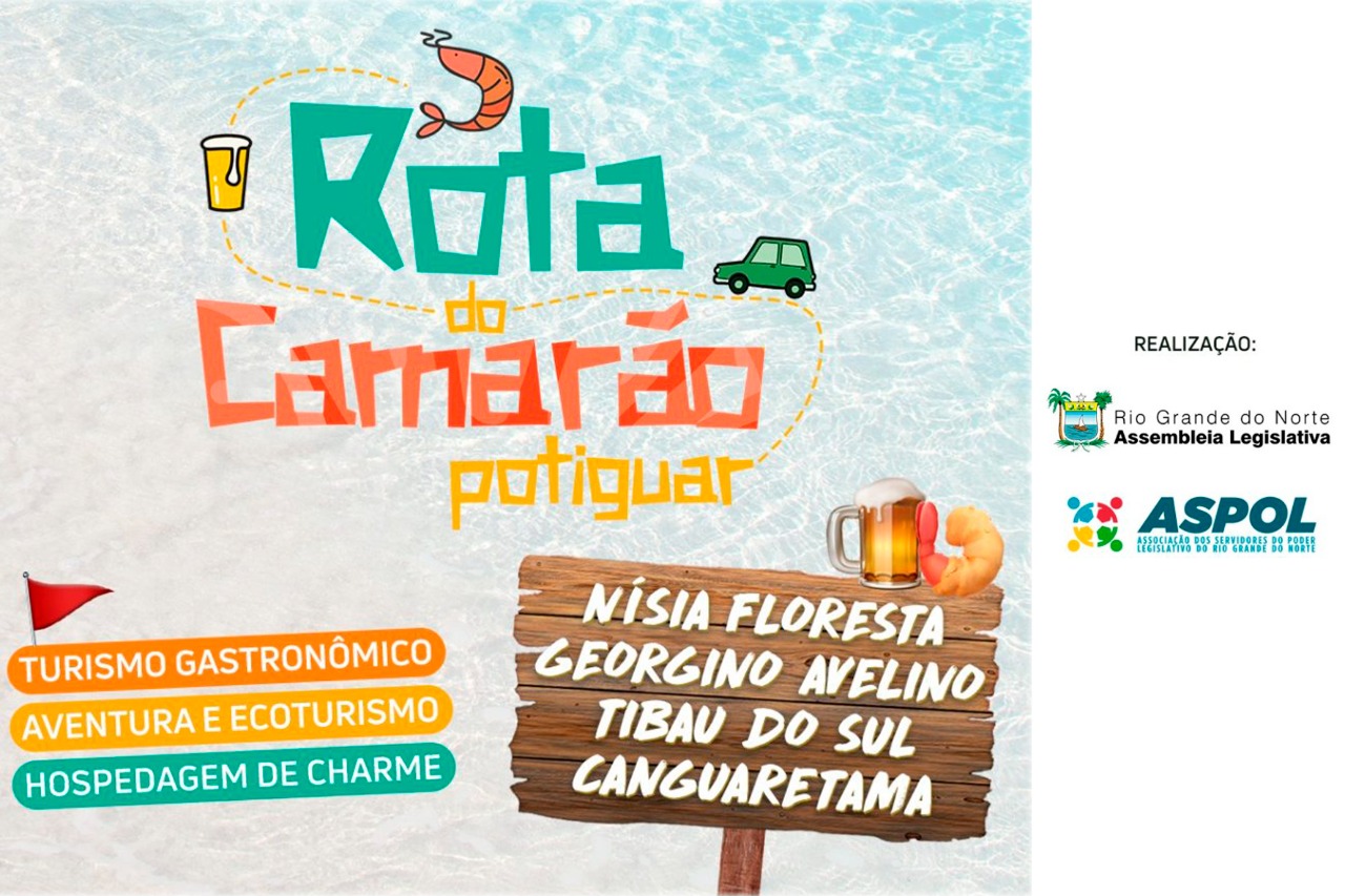 A Associação dos Servidores do Poder Legislativo (Aspol), em parceria com a Associação Brasileira de Criadores de Camarão (ABCC), lança para os servidores, familiares e público em geral, a Rota do Camarão Potiguar, que contempla os municípios de Nísia Floresta, Georgino Avelino, Tibau do Sul e Canguaretama.