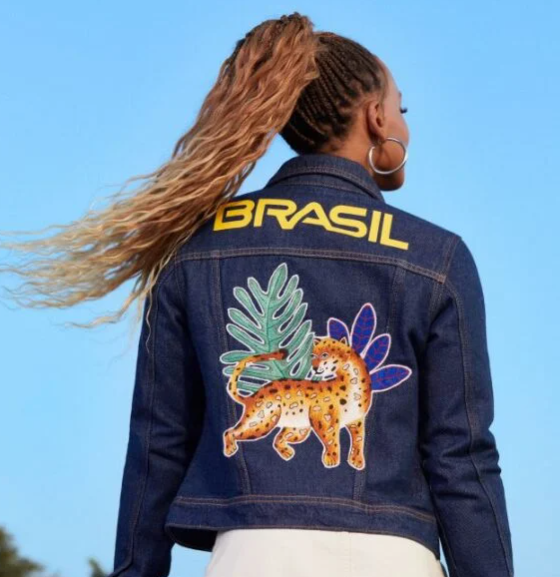 “Surgiu a ideia de o Instituto Riachuelo fazer os uniformes dos jogadores das Olimpíadas e, conhecendo o trabalho que a gente desenvolvia no município, de fazer a jaqueta com uma parte de produtos reciclado e botar pássaros e animais que representassem a fauna brasileira. Aí veio a onça, o tucano e a arara. Eles que criaram o design”, disse Salmira.