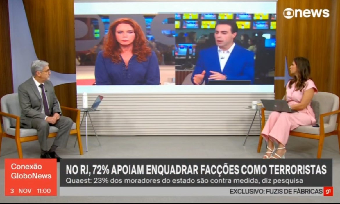 Um áudio interno da GloboNews vazou durante a cobertura de uma pesquisa da Quaest que mostrou que 72% dos moradores do Rio de Janeiro apoiam a ideia de classificar facções criminosas como organizações terroristas.