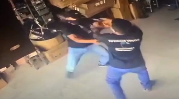 Nas imagens das câmera de segurança, é possível ver que o bandido (de máscara e boné) aborda um cliente dentro da loja. Neste momento, é possível ver o proprietário se aproximando, puxando o assaltante e mostrando a arma. Neste momento, teria começado uma troca de tiros.