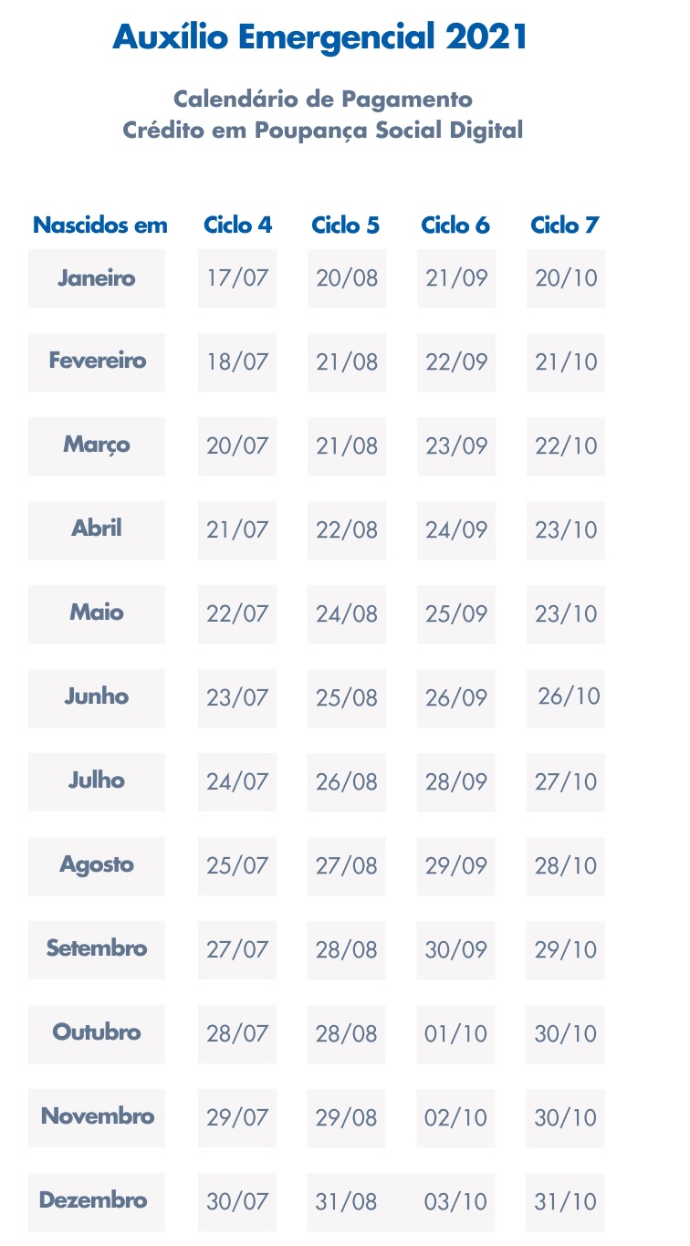 A Caixa Econômica Federal libera para mais um grupo de beneficiários o pagamento da 6º parcela do Auxílio Emergencial 2021 nesta sexta-feira (24). O benefício será depositado nesta sexta para as pessoas cadastradas nascidas em abril. No sábado (25), recebem o auxílio os nascidos em maio.