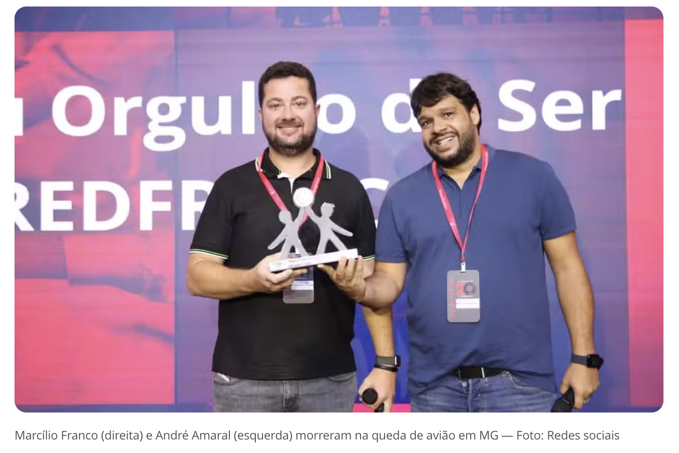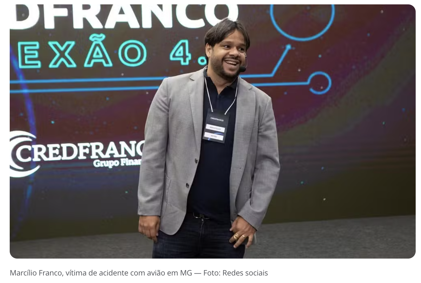 Dois dos passageiros são Marcílio Franco e André Amaral, empresários do setor financeiro. Eles são sócios-fundadores da CredFranco. Nas redes sociais, a empresa publicou uma nota de pesar e informou que os empresários estavam com os familiares no avião.