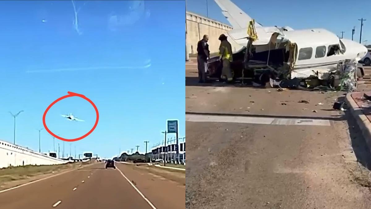 Avião cai em rodovia no Texas, se parte ao meio e colide com três carros