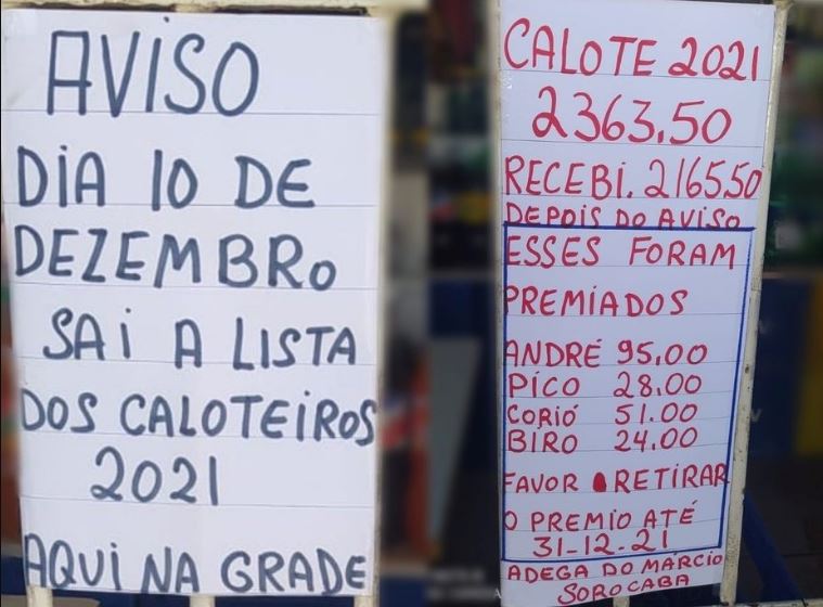 Um bar na zona norte de Sorocaba (SP) ficou conhecido nas redes sociais após o dono do estabelecimento instalar uma placa com uma lista dos “caloteiros premiados de 2021”, na última semana.