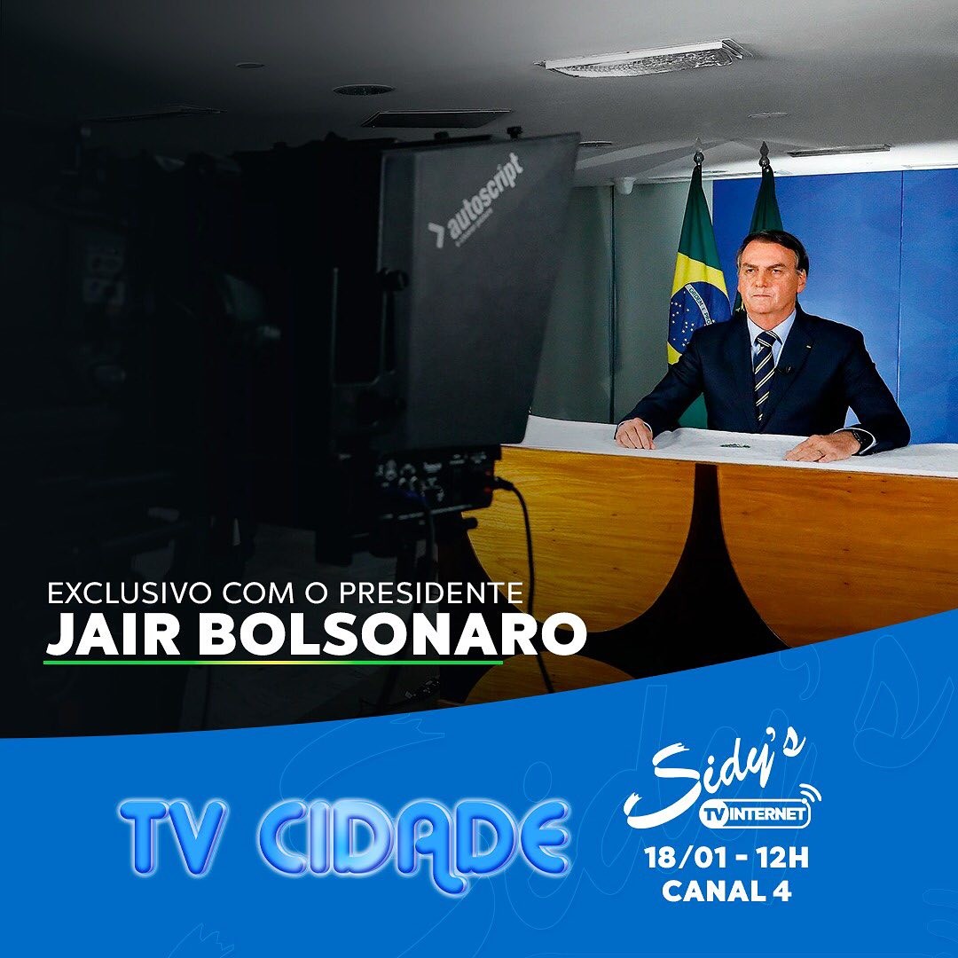 O presidente Jair Bolsonaro vai conceder entrevista exclusiva, ao vivo, para o canal Sidy’s TV, emissora de Currais Novos, nesta terça-feira (18), A participação de Bolsonaro está prevista para o meio dia, no programa TV Cidade.