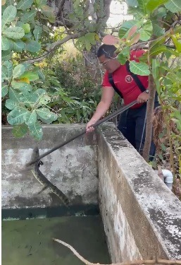Neste domingo (3), uma equipe do Corpo de Bombeiros Militar do Rio Grande do Norte realizou o resgate de dois jacarés em um tanque na Comunidade Rio da Prata, em São Gonçalo do Amarante. A ação foi solicitada pela proprietária do local, preocupada com a segurança de sua família e com o bem-estar dos animais.