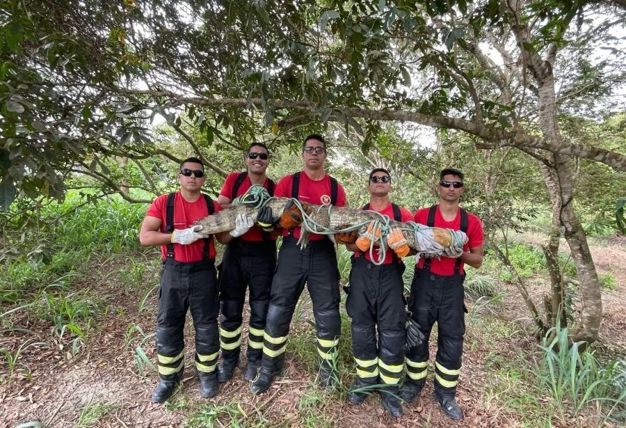 A equipe de bombeiros isolou a área e efetuou a captura do jacaré sem causar ferimentos, utilizando técnicas que asseguraram um resgate seguro e eficiente.