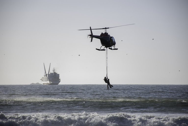 Motos-aquáticas foram usadas no salvamento das vítimas que caíram no mar ou que não conseguiam retornar para a orla.