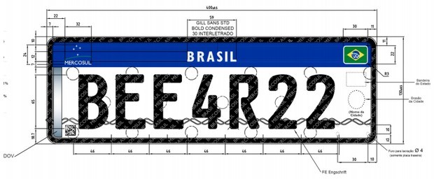 As novas placas terão o fundo branco, com quatro letras e três números. A categoria dos veículos será indicada pela cor da combinação alfanumérica: particular (preta), comercial/aprendizagem (vermelha), oficial (azul), experiência (verde), diplomático (dourado) e colecionador (prateado).