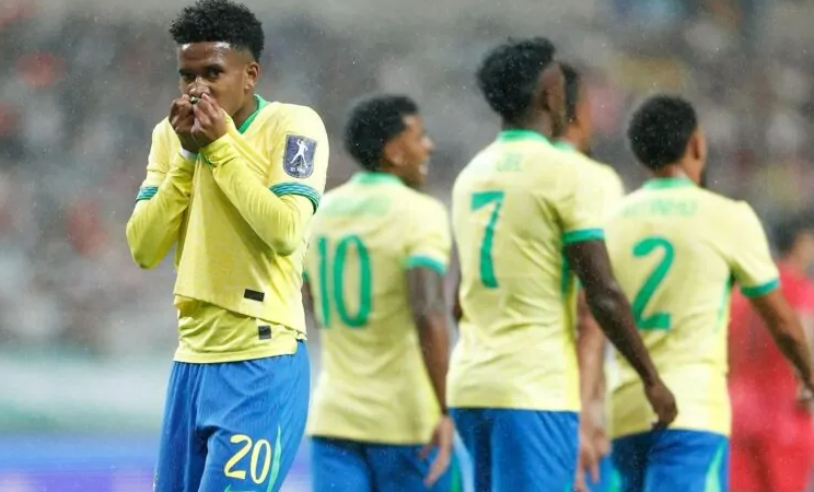 Em Seul, a seleção brasileira venceu a Coreia do Sul por 5 a 0 nesta sexta-feira 10 no primeiro amistoso da série preparatória para a Copa do Mundo de 2026. Os gols foram marcados por Estêvão e Rodrygo, duas vezes cada, e Vini Jr.