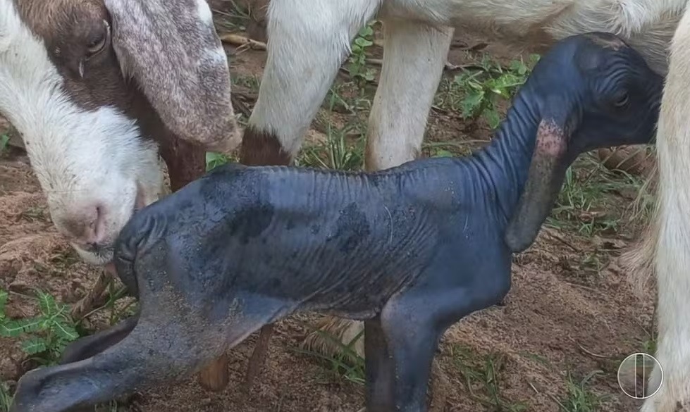 Um cabrito chamou a atenção no interior do Rio Grande do Norte ao nascer sem nenhum pelo no corpo. O fato aconteceu na Agrovila Palmares, na zona rural de Apodi.
