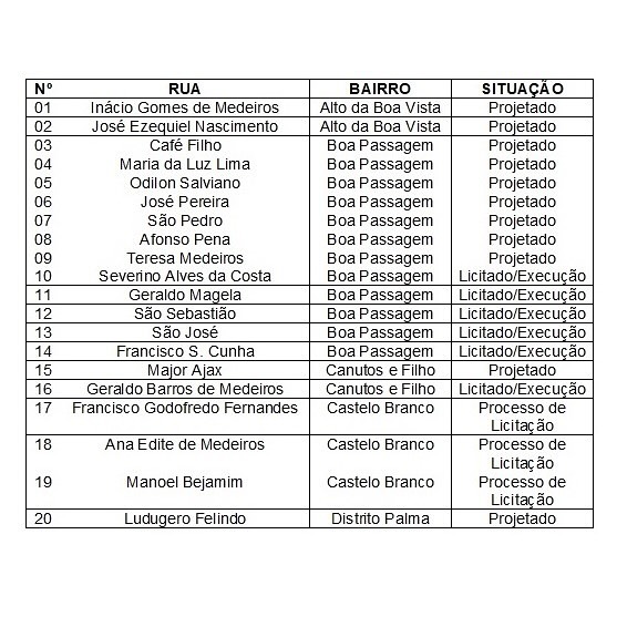 Município de Caicó pretende pavimentar 52 ruas durante o ano de 2024. A relação oficial foi disponibilizada pelo secretário de Infraestrutura, Pedro Pereira, que consta de ruas com projetos já concluídos, ruas com licitação já concluída para execução, e ruas com em processo de licitação.