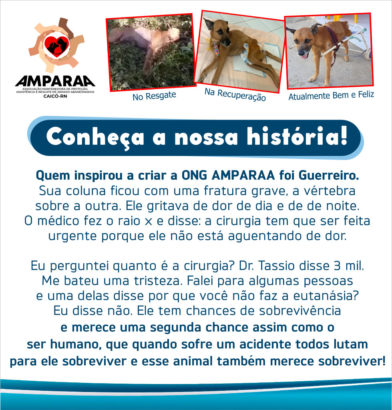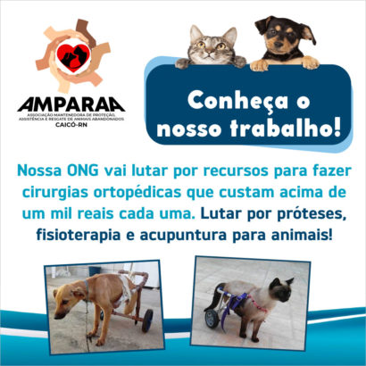 A Associação Mantenedora de Proteção Assistência e Resgate de Animais Abandonados – AMPARAA – é uma ong que tem como finalidade dar assistência aos animais, excluídos, principalmente os deficientes, e claro, como outras do mesmo segmento, precisa de ajuda para se manter. A AMAPARAA chega para ampliar oportunidades de lar para animais de rua, dando ênfase a animais em extremo abandono e com deficiência.