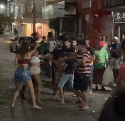 Segundo informações de pessoas que presenciaram o tumulto, ocorrido na noite desse sábado (26), as mulheres que trocavam agressões brigavam por um homem.