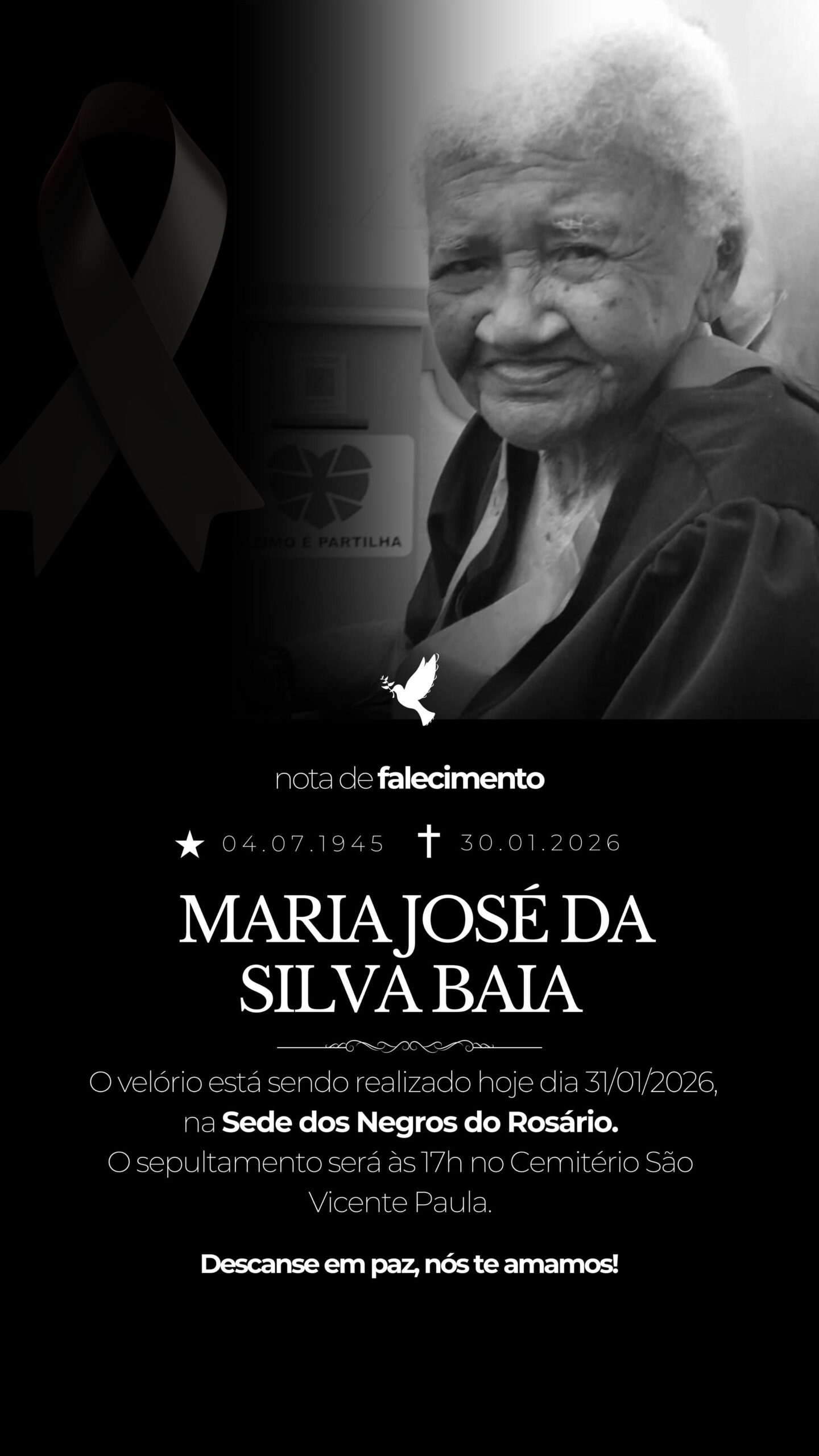 Neste momento de dor, a cidade se une em solidariedade aos familiares, amigos e à comunidade dos Negros do Rosário.