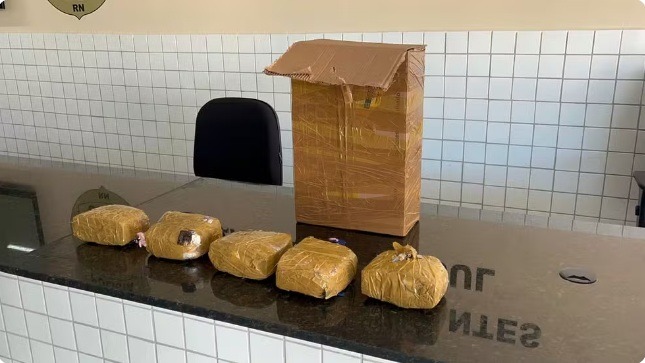 De acordo com a Polícia Rodoviária Federal (PRF), responsável por interceptar a droga, a caixa – que tinha cinco pacotes da droga dentro – seguia de Fortaleza com destino a Natal.