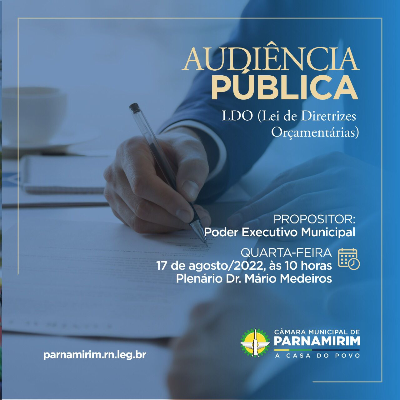 📖 A Câmara de Parnamirim vai realizar, às 10h da próxima quarta-feira (17) , uma Audiência Pública sobre a LDO (Lei de Diretrizes Orçamentárias).