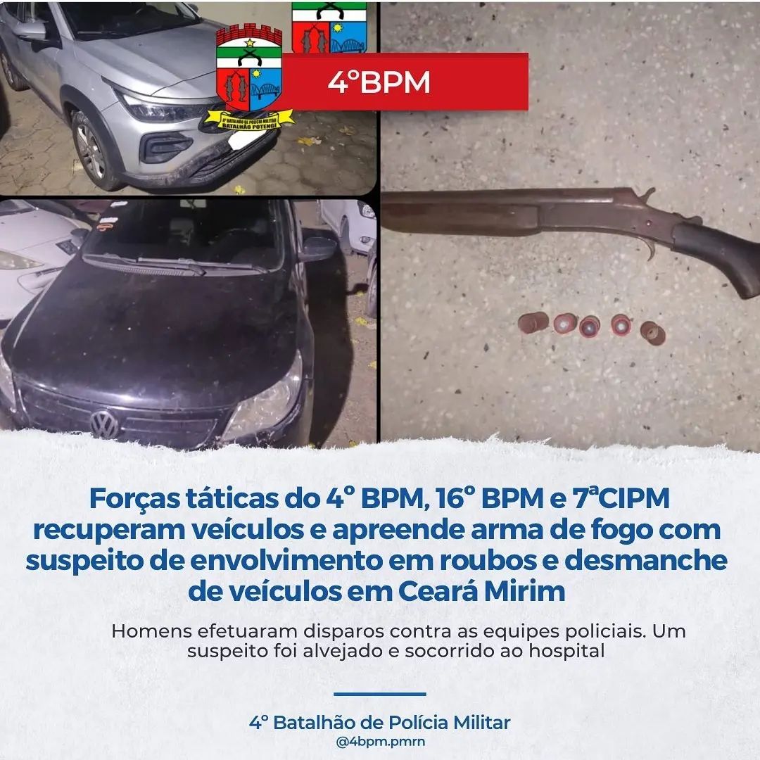 No local apontado na denúncia, suspeitos fugiram efetuando disparos contra as equipes. Durante a troca de tiros, um suspeito, 39 anos, foi atingido e posteriormente socorrido ao Hospital Persilio Alves, em Ceará Mirim.