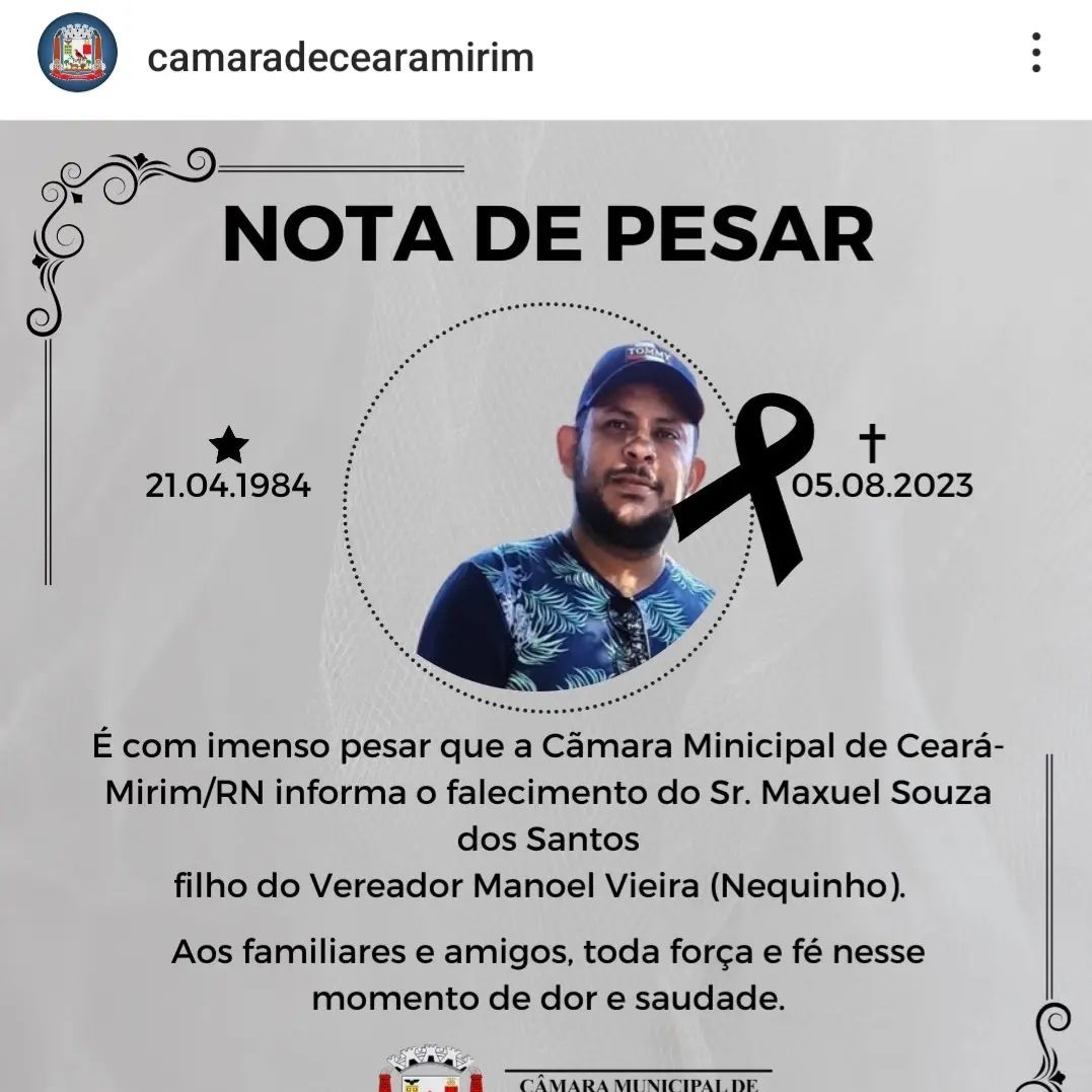 A notícia é do Blog de Gustavo Negreiros. A Câmara Municipal de Ceará-Mirim, na Grande Natal, resolveu fazer uma homenagem a Maxuel Souza dos Santos, filho do vereador Manoel Vieira, o Nequinho.