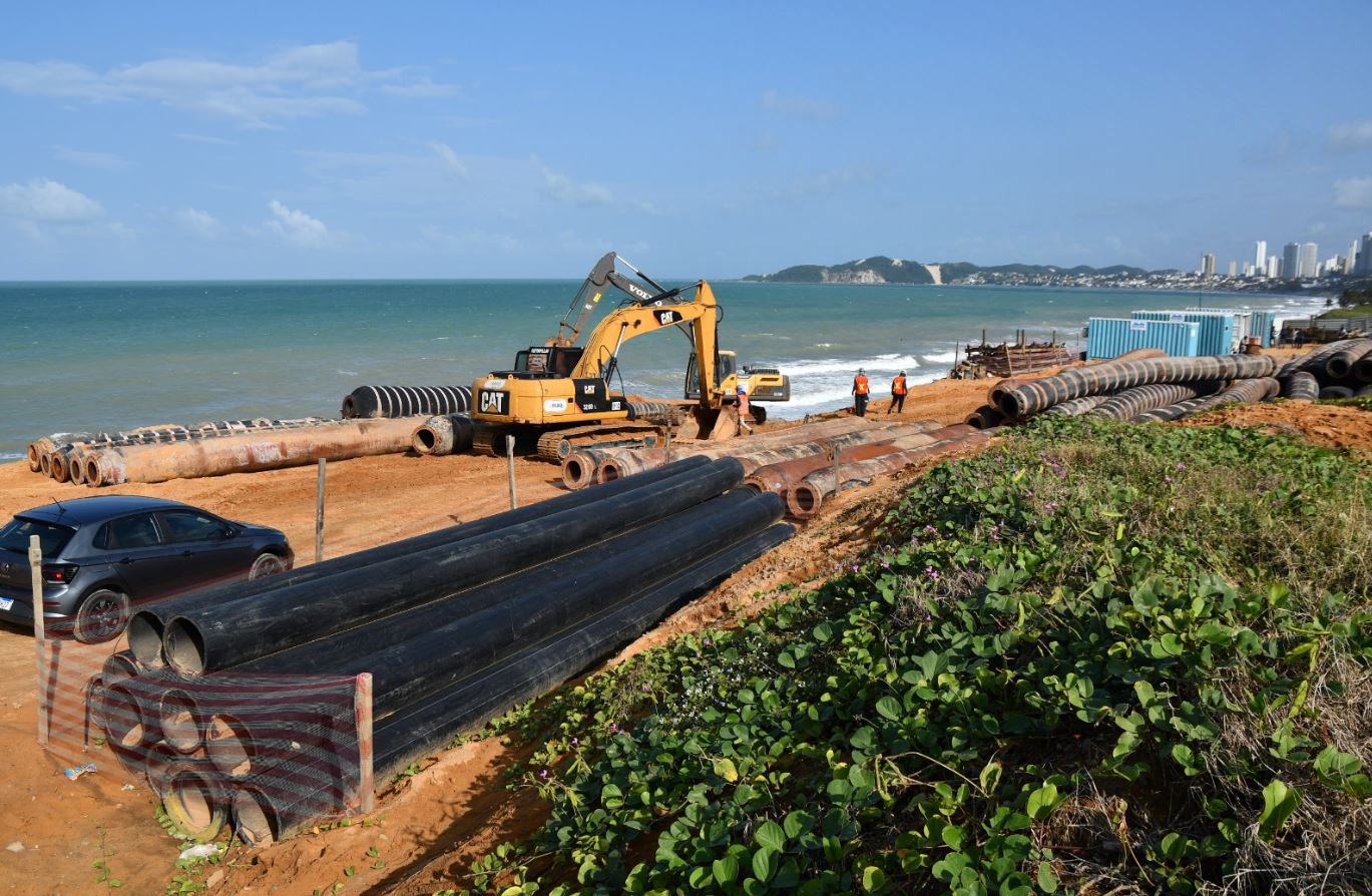 Canteiro de obras da engorda de Ponta Negra recebe primeiros equipamentos