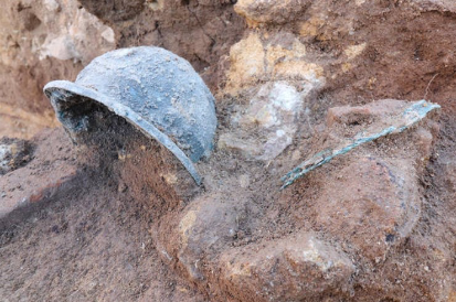 Capacetes e armas de guerra de 540 a.C. são descobertos em área escavada