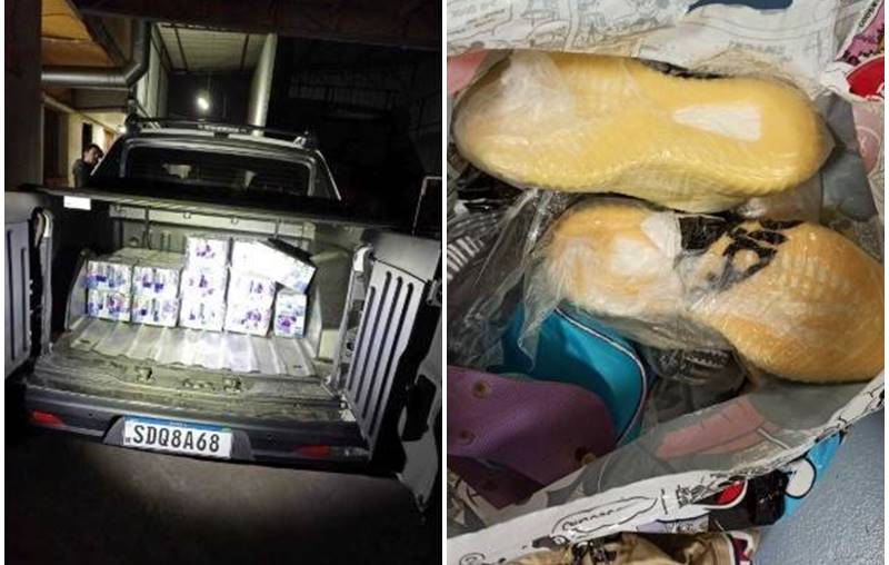 A lista de bens apreendidos registra pneus, roupas de marca – Aramis, Burberry, Adidas, Lacoste -, mais de 150 peças de roupa infantil, bolsa da marca Tommy, carteiras da Louis Vitton, relógios, garrafas de vinho, itens natalinos, tambores, um clarinete, um computador da marca Apple, uma TV 47 polegadas, máquina de solda, furadeira, kit de aparelho de otorrinolaringologista, maleta com lentes fotográficas e compressores.