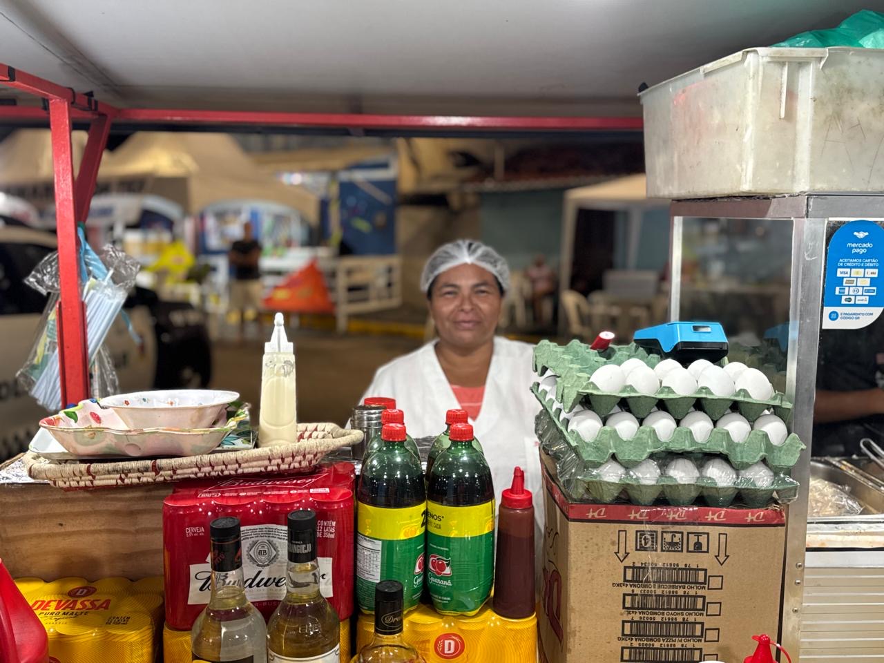Dona Maria é moradora de Parnamirim há mais de 20 anos e se cadastrou como vendedora ambulante para vender bebidas. Ela disse estar satisfeita com o movimento deste sábado. “Estou vendendo muito bem, graças a Deus.” A comerciante também elogiou o tratamento recebido pelos ambulantes depois de terem se cadastrado. “Esse ano tudo está muito melhor. Até internet privativa nós tivemos. Isso facilitou demais o nosso trabalho, eu fiz bons negócios”, disse, ao acabar de fazer uma venda utilizando a maquininha de cartão.