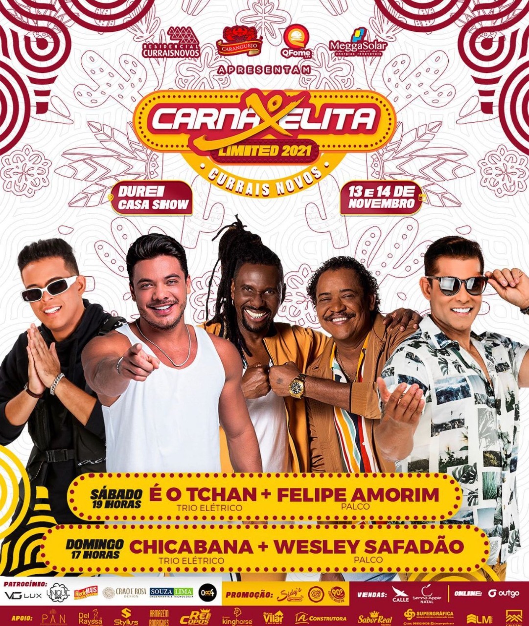 A maior micareta do interior do Rio Grande do Norte, Carnaxelita, divulgou na manhã desta terça-feira (9) nova programação. A novidade é que o evento terá dois dias, sábado (13) e domingo (14). Em entrevista ao jornalista Ismael Medeiros, na Rádio Currais Novos, Júnior Farias, que é diretor da Prime Eventos, confirmou a banda É o Tchan no trio elétrico, como atração extra na programação de sábado.