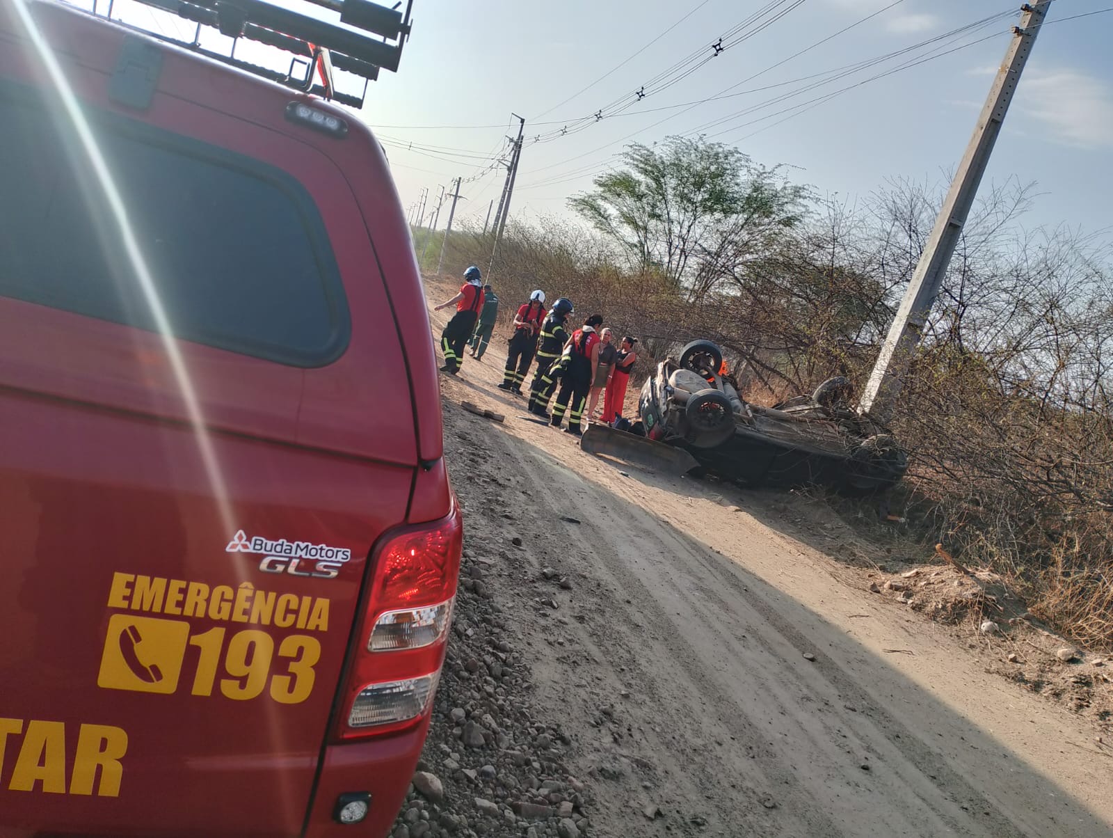 Carro capota na RN-288 e motorista fica preso nas ferragens; Corpo de Bombeiros é acionado