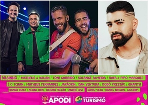 A prefeitura de Apodi, no interior do Rio Grande do Norte, divulgou as atrações do carnaval 2023, e parece não ter poupado esforços para contratar atrações baianas, do segmento sertanejo e também pagodeiro para atrair público e girar a economia da terceira da região nos festejos momescos.