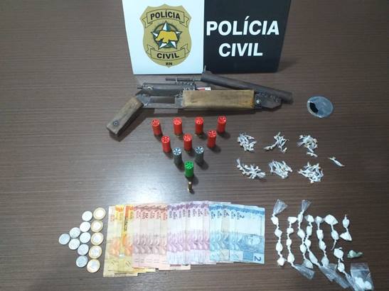 Polícia prende homem e apreende adolescente, arma e drogas em Macaíba