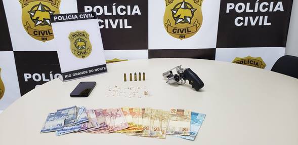 Policiais civis da Delegacia Municipal de Macaíba, em ação conjunta com a Força-Tarefa de Combate ao Crime Organizado (FT-NUDEM), prenderam, nesta sexta-feira (26), Joalison da Silva Oliveira, conhecido como “Jojo do trem”, 23 anos, e apreenderam uma adolescente de 16 anos.