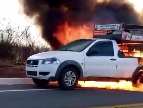 Um veículo de transporte de animais, ovinos, sofreu incêndio na tarde desse sábado, 16, quando em deslocamento pela BR-427 entre Jardim do Seridó e Caicó, próximo à curva da comunidade Malhada da Areia.
