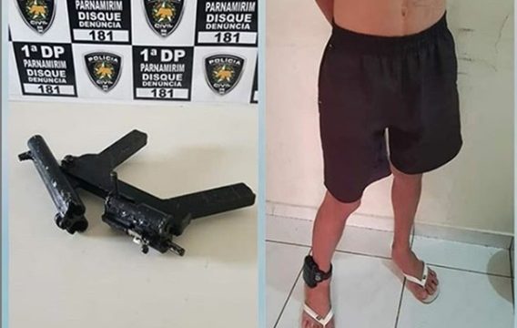 Policiais civis do 1° Distrito Policial de Parnamirim prenderam, nesta quarta-feira (02), José Maxwell Zeferino, 24 anos, em flagrante delito, portando uma arma de fogo de fabricação caseira, calibre 12, motivo pelo qual ele foi autuado pela suspeita da prática do crime de porte ilegal de arma de fogo.O homem estava cumprindo pena, no regime semiaberto, pelo crime de tráfico de drogas.