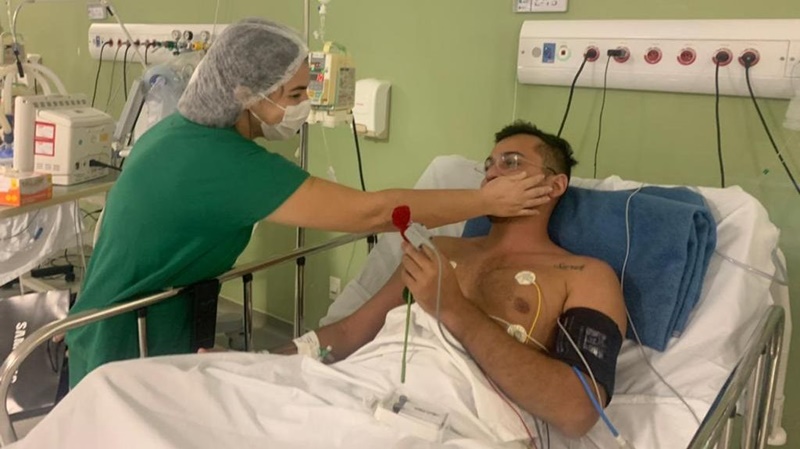 O pedido de casamento partiu da enfermeira Dayse Rodrigues, 32, para o técnico de enfermagem Carlos Henrique, 28, que precisou ser internado na ala de alta complexidade após testar positivo para a doença.