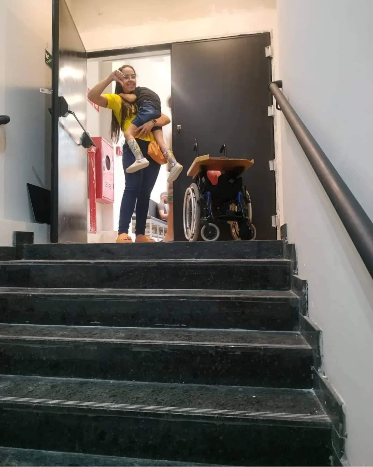“Vivemos em uma sociedade que ainda tem uma longa caminhada na luta pela igualdade. As pessoas são desrespeitadas por falta de acessibilidade e empatia com o próximo. A inclusão social só vai acontecer quando a sociedade entender que todos merecem o direito de ter as mesmas oportunidades. Foto no @cineland_br em Caicó-RN. O cinema fica no segundo andar no @ciolashopping e sem elevador. Logo, se não houver quem carregue o deficiente, não tem cinema.Se vc é contra essa exclusão, compartilhe essa publicação para que isso mude!”
