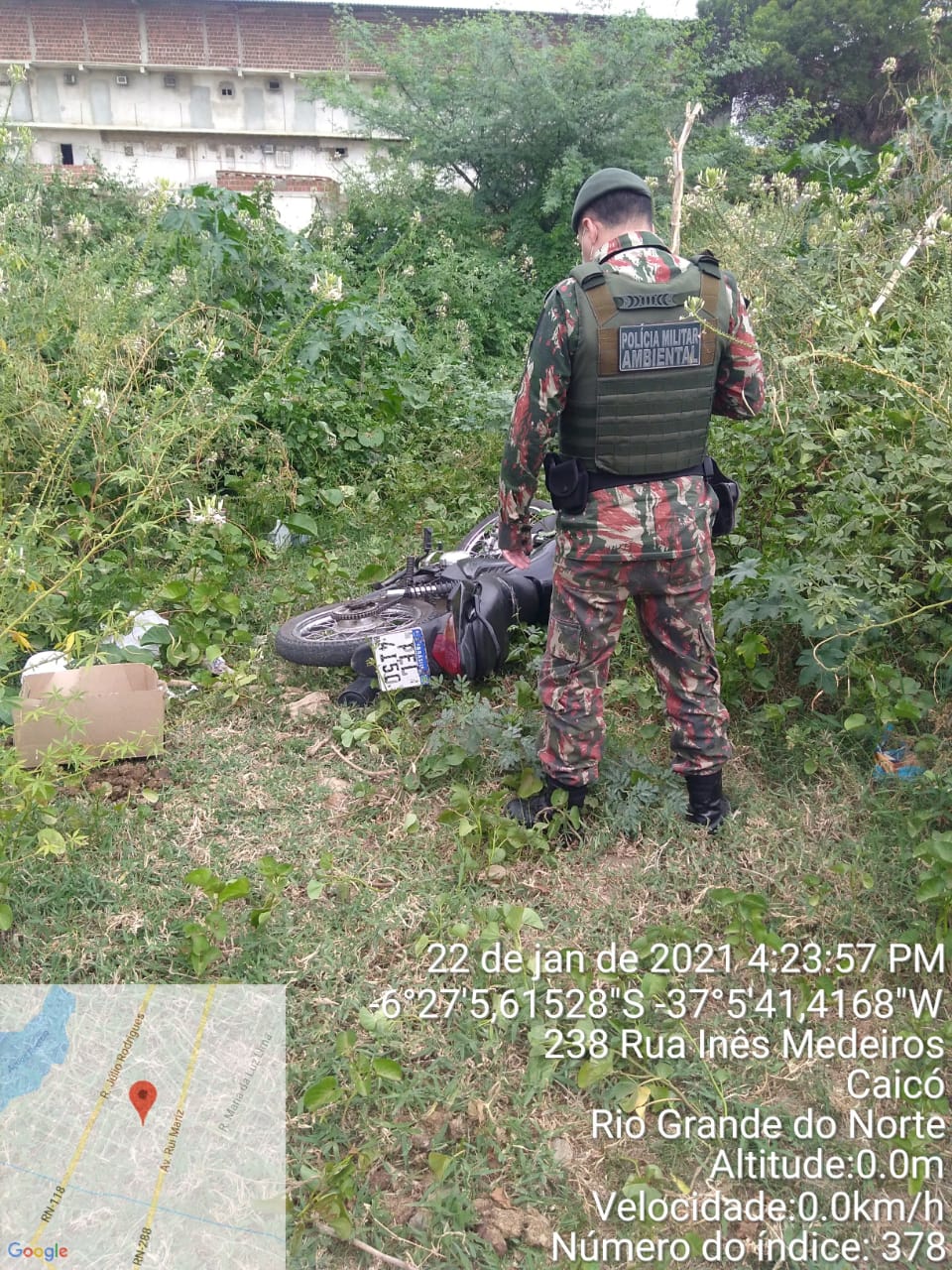 Policiais militares da CIPAM localizaram uma moto com queixa de furto/roubo no bairro Darci Fonseca , zona norte da cidade, no finalzinho da tarde dessa sexta feira, em Caicó.