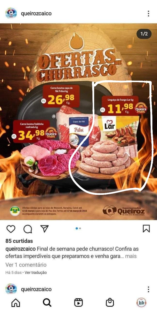 mar 3, 2022, 9:00 amVale salientar que não é só nos Queiroz que encontramos essa marca de linguiça